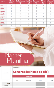Planner e planilha de controle. Organize os gastos com alimentação e treinamento do seu cão de forma eficaz. Além disso, tenha à mão a lista de ingredientes para a semana e o mês, garantindo que seu pet tenha sempre o que precisa.